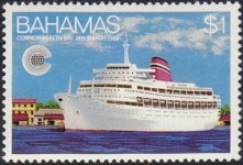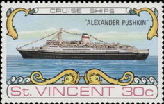 35-cent stamp depicts the Black Sea Shipping Company's Maksim Gorkiyi cruise ship in Nassau Harbor.
