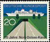 20-pfennig stamp depicts a cruise ship in the North Sea to Baltic Sea Canal.