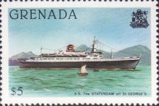 $1 stamp depicts Cunard Line's Cunard Countess cruise ship; $5 stamp depicts Holland America Lines' SS Statendam cruise ship.
