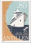 1-gulden stamp depicts a stylized cruise ship.