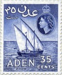 A listing of postage stamps of Aden depicting design errors.