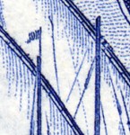 35-cent stamp depicts sails with no attachments to the masts.