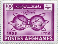 50- and 100-poul stamps mis-translates "atoms for peace" with "ATOME" rather than "ATÔMES".