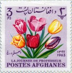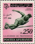 2-, 3-, 4-, 5-, 10-poul regular postage stamps and 1.5-, 2-, 3-, 3.5-, 4-, and 6-rupee Afghani airmail stamps issued for Teachers' Day omit the accent on the first "E" of "JOURNEE".