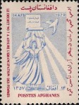 14-afghani stamp marks Women's Day, but is inscribed "POSSTES" instead of "POSTES".