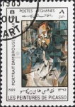 8-afghani stamp depicts the Pablo Picasso painting Portrait of Ambroise Vollard, misspelled as "Ambrouse Vollar".