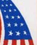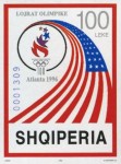5-lek stamp for 1996 Summer Olympic Games, showing USA flag with 13 stripes but only three rows of stars.