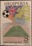 25-lek stamp depicts Great Britain flag drawn with red diagonals not extending to right corners, and not drawn correctly within the white diagonals.