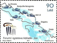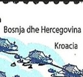 90-leke postage stamp depicts map of Adriatic and Ionian Seas, but inscriptions of Bosnia-Herzegovina and Croatia are transposed.