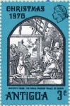 3-cent stamp depicts Albrecht Dürer's Nativity scene, but his monogram is seen in the lower right corner to be flipped side-to-side (the curve of the "D" is on the left instead of right).