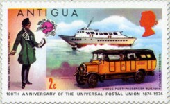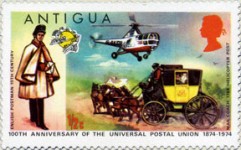 1/2-cent stamp depicting English mailman, coach, and helicopter, has misspelled caption "ENLISH" instead of "ENGLISH"; 2-cent stamp depicting English mailtrain guard has misspelled caption "FOSTAL" instead of "POSTAL".