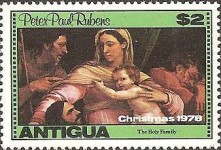 $2 stamp depicts painting Madonna and Child with Saints Joseph and John and a Donor by Sebastiono del Piombo, mis-attributed to Rubens.