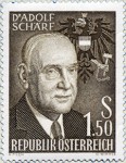 1.50-schilling stamp depicts President Adolf Schärf, but the left collar of his jacket is missing.