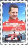 75-cent stamp depicts Formula 1 race car driver Michael Schumacher with first two winning years as "1994 1995" which should be "1995 1996". A corrected stamp was issued May 29, 2007.