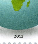 Standard world rate postage stamp depicts globe, omitting Antarctica.
