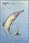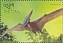 80-ngultrum stamp depicts Pteranodan with incorrect caption "Triceratops"; 80-ngultrum stamp depicts Ichthysoaur with incorrect caption "Present Day Dolphin".