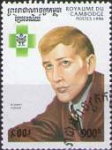 900-riel stamp depicts Bobby Fischer, with surname misspelled "Fisher".
