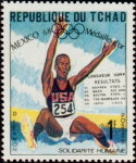 1-franc stamp depicts American athlete Bob Beamon, but first name initial on stamp is "D."