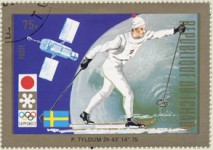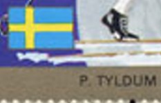 75-franc stamp depicts Olympic winner Norwegian skiier Pål Tyldum, erroneously with a Swedish flag.