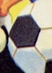 45-peso stamp depicts a soccer ball with one six-sided black tile instead of five sides like the other black tiles.