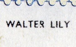 4-cent stamp depicts water lillies with misspelled caption "WALTER LILY". The stamp was soon re-issued with correct caption.