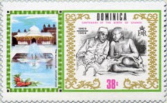 6-cent, 38-cent, and $1.20 stamps mark the 100th anniversary of the birth of Mohandas Gandhi, with misspelled caption "GHANDI".
