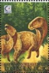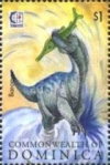 $1 stamp depicts Camptosaurus dinosaur with misspelled caption "Comptosaurus". $1 stamp depicts Baryonyx dinosaur with misspelled caption "Baronyx".