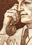 3+2-pfennig semi-postal stamp depicts a businessman holding a cordless telephone.