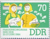 70-pfennig stamp depicts women in agriculture, but from the overlap of the coat (should be right over left for women), the image must be reversed left-right.