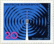 20-pfennig stamp depicts Stuttgart television tower, with radio waves eminating from the restaurant rather than the top of the aerial.