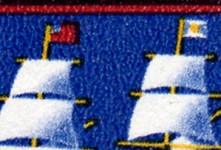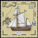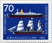 70-pfennig stamp depicts flags and sails of ship blown in opposite directions.