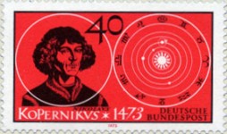 40-pfennig stamp commemorates the 500th anniversary of Copernicus, with a drawing of part of the solar system that has an extra planet in the same orbit as the Earth.