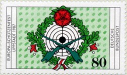 80-pfennig stamp for the 7th European Rifleman's Festival depicts an inverted rifle trigger.