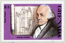 $1.10 stamp depicts Jons Jakob Berzelius with incorrect spelling "Jacob"; $3 stamp depicts James Watt and steam engine diagram, with incorrect captions "RUDOLF DIESEL" and "Diesel Engine".