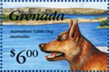 $6 stamp depicts Australian cattle dog, but adds an extra "i" to Australia and Australian.