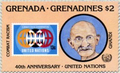 $2 stamp depicts Mahatma Gandhi with incorrect caption "GHANDI".