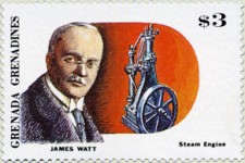 $3 stamp depicts Rudolf Diesel and Diesel engine, with incorrect captions "JAMES WATT" and "Steam Engine".
