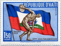 50-centime stamp and 1.50-gourde airmail stamp commemorate the 3rd Pan American Games, with caption "3eme JEUX PAN AMERICAN" which should be "3eme JEUX PANAMERICAINS".