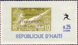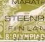 25-centime stamp depicts name of Albin Stenroos over a stamp image of France, misspelled "Steenroos".