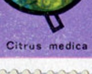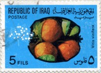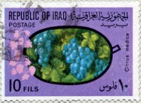 5-fils stamp depicts oranges but has latin caption "Vitis vinifera" for grapes; 10-fils stamp depicts grapes but has latin caption "Citrus medica" for oranges.