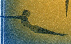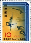10-yen stamp of Olympic athletes, but the diver has the feet drawn backwards (the heels are on the front).