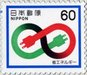 60-yen stamp depicts a useless and dangerous electrical cable: plug it in and get a shock from the opposite end, or plug it in two outlets and it will probably melt and burn, or trip the safety breaker.