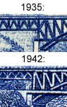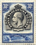 30-cent stamp depicts Jinja Bridge, but omits carriage-way below rail bridge on left side, which was later included in 1942 re-issue.