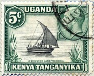 5-cent stamp depicts a dhow boat, with the left rope not quite touching the sail at the top. A corrected version was issued.