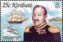25-cent stamp depicts a sailing ship being blown to the right, with flags being blown to the left.