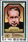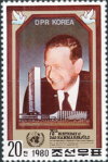 20-chon and 1-won stamps depict Dag Hammarskjöld as Nobel Prize winner, misspelled "Price".