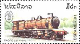 32-kip stamp depicts a Pacific 231 train, but stamp omits usual denomination and country in Latin characters, like the other five stamps of the set.