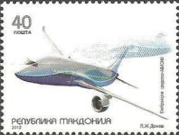 40-d postage stamp depicting a jet has the country name missing the "E" after the "K".
