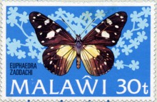 A listing of postage stamps of Malawi depicting design errors.
