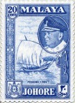 20-cent stamp depicts a fishing boat, with no one steering; another person appears in other stamps of the same design.